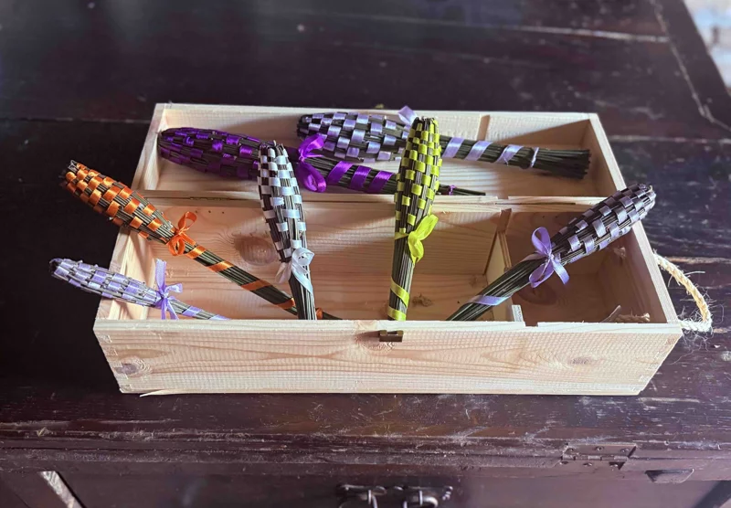 Fusi profumatissimi , interamente realizzati con fiori e steli di lavanda intrecciati pazientemente e sapientemente a mano e in varie colorazioni